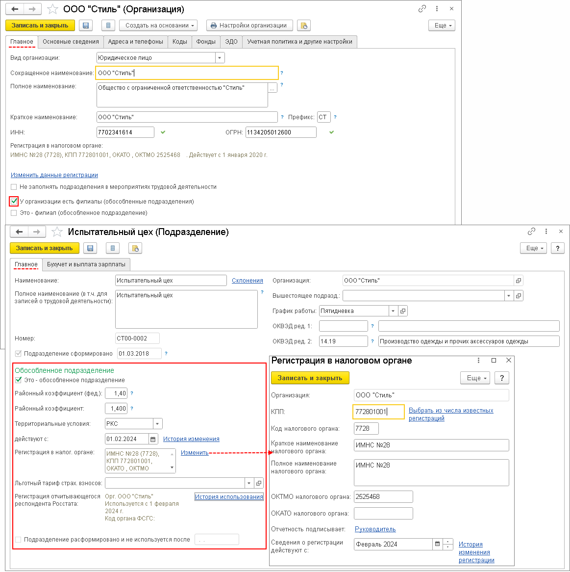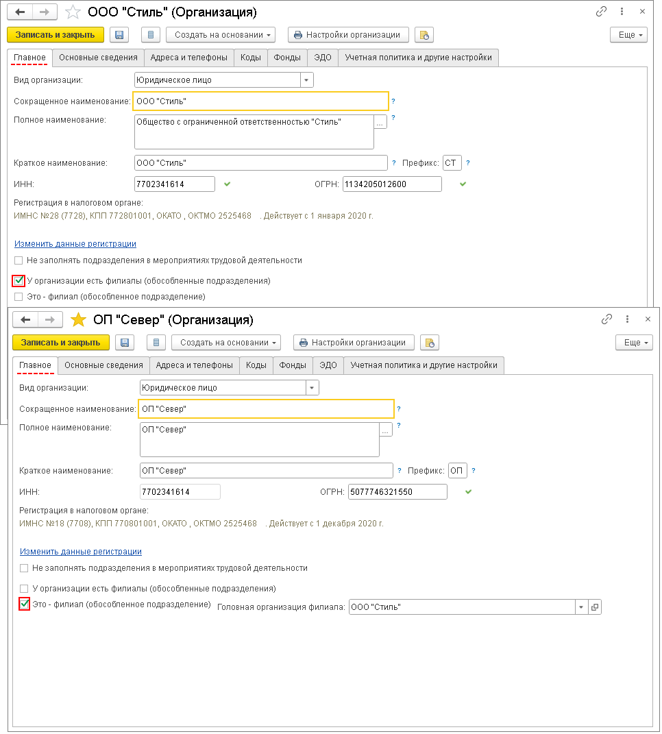 Создание обособленного подразделения в 1С Бухгалтерия 8.3