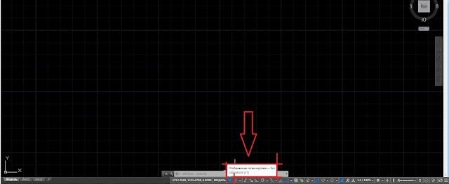 | Рисунок 1. Отображение/скрытие сетки в автокад |